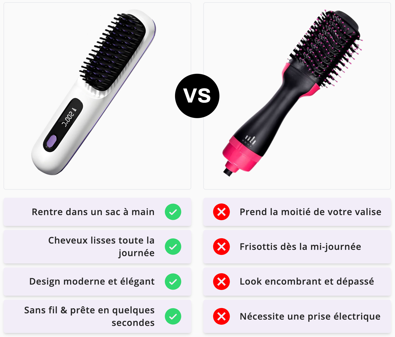 Oui – Oria Silk offre des résultats professionnels dans un format léger. Pas de câbles, pas d’attente, pas de dégâts : des cheveux lisses et soignés où que vous soyez.